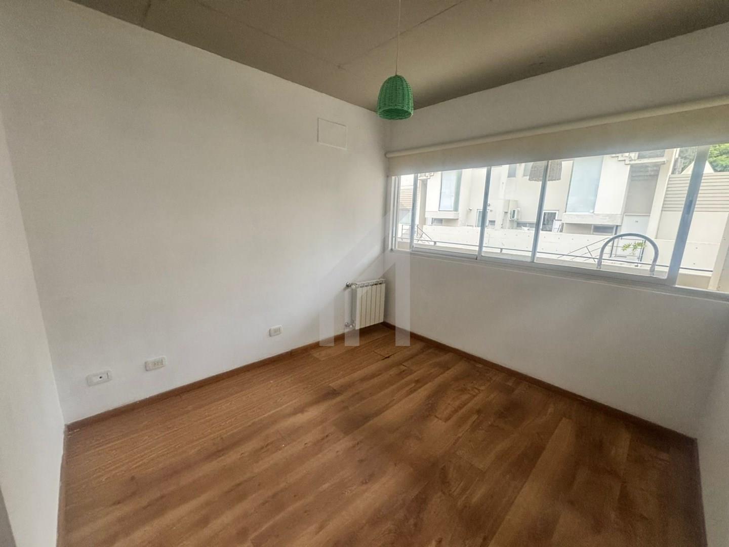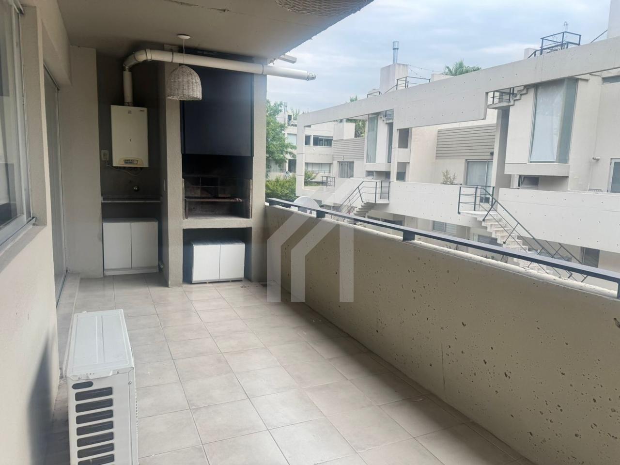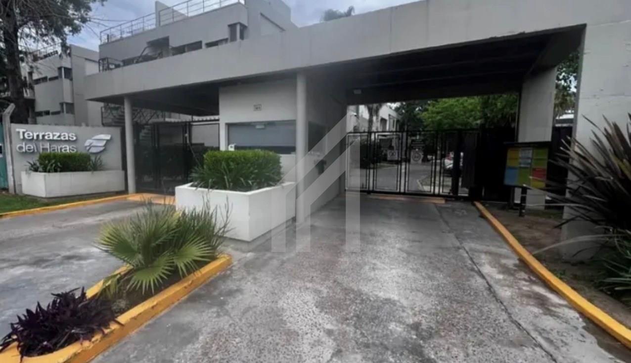 Alquiler de departamento de dos ambientes en el Barrio Cerrado Terrazas del Haras, Pilar. El Departamento cuenta con 41 m2 cubiertos y 10 m2 de balcón terraza con parrilla. La unidad cuenta con cocina con espacio para lavarropas, living comedor con salida al balcón terraza, toilette y dormitorio en suite (con baño con bañera) con placard completo. Aires frío calor y cortinas roller black out en living y dormitorio. Calefacción por losa radiante por caldera individual . Muy luminoso y con vistas abiertas. Primer piso por escalera. Cochera fija descubierta. Gas natural. El barrio posee SUM, piscina, plaza de juegos y vigilancia las 24 horas. Excelente acceso a metros de Panamericana (Km 46). A una cuadra de supermercados y comercios y del centro comercial Pueblo Caamaño. Inmejorable ubicación . Alquiler por dos años. Incremento trimestral por IPC. Ingresos comprobables. Expensas $280.000 (incluyen Aysa) ............................... Corredor Responsable: Norma Sandoval CUCICBA 8532 / CSI 6950 .................................. La venta de dicho inmueble está supeditada a que el propietario trámite ante la AFIP el C.O.T.I. Las medidas son aproximadas a título informativo las reales surgirán del título de propiedad.